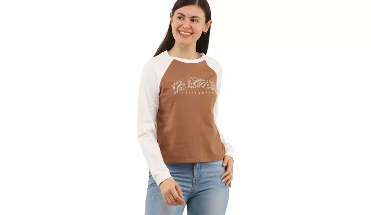 CAMISETA MANGA LARGA ACTIVE USA CAFÉ C/BLANCO PARA MUJER