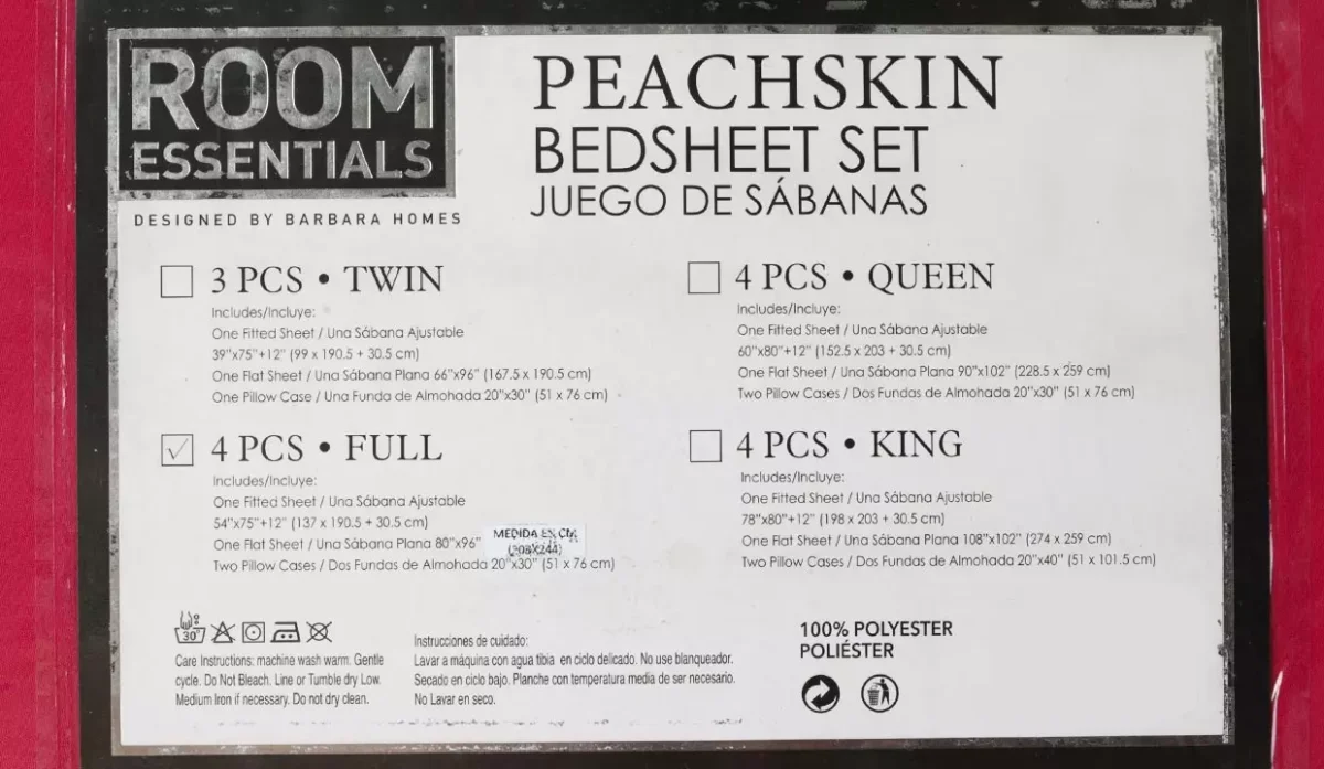 - 1 sábana ajustable de 137 cm de ancho x 190,5 cm de largo x 30,5 cm de alto.