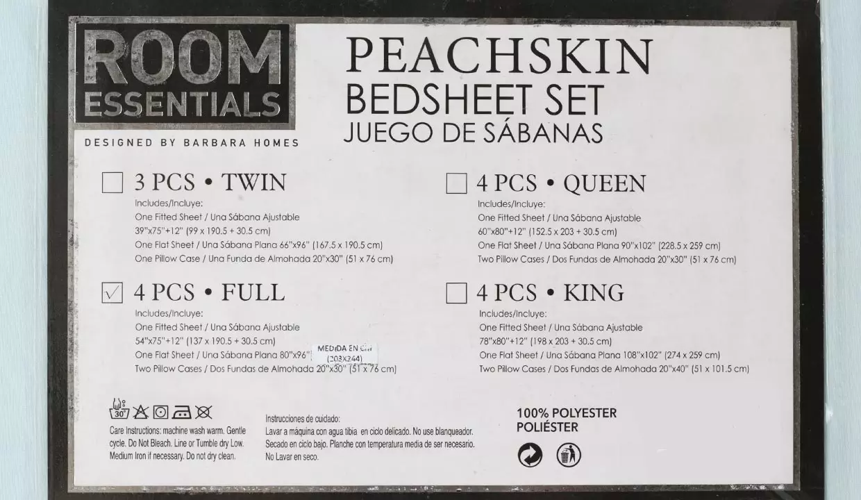 - 1 sábana ajustable de 137 cm de ancho x 190,5 cm de largo x 30,5 cm de alto.