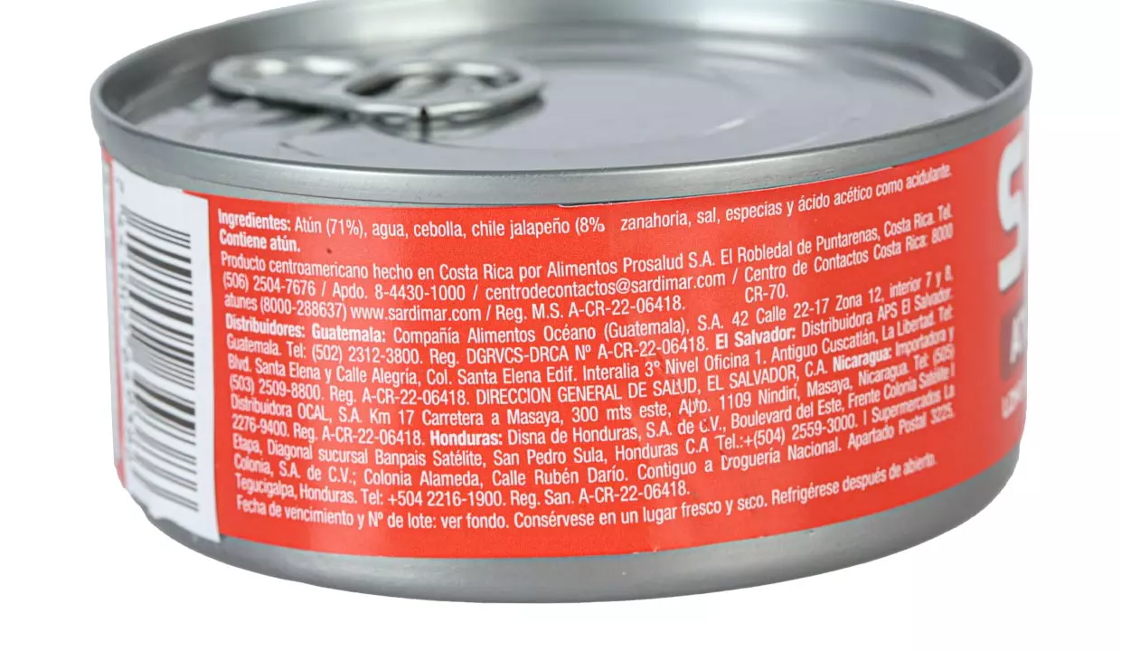 - Atún (71%), agua, cebolla, chile jalapeño (8%), zanahoria, sal, especias y ácido acético como acidulante.