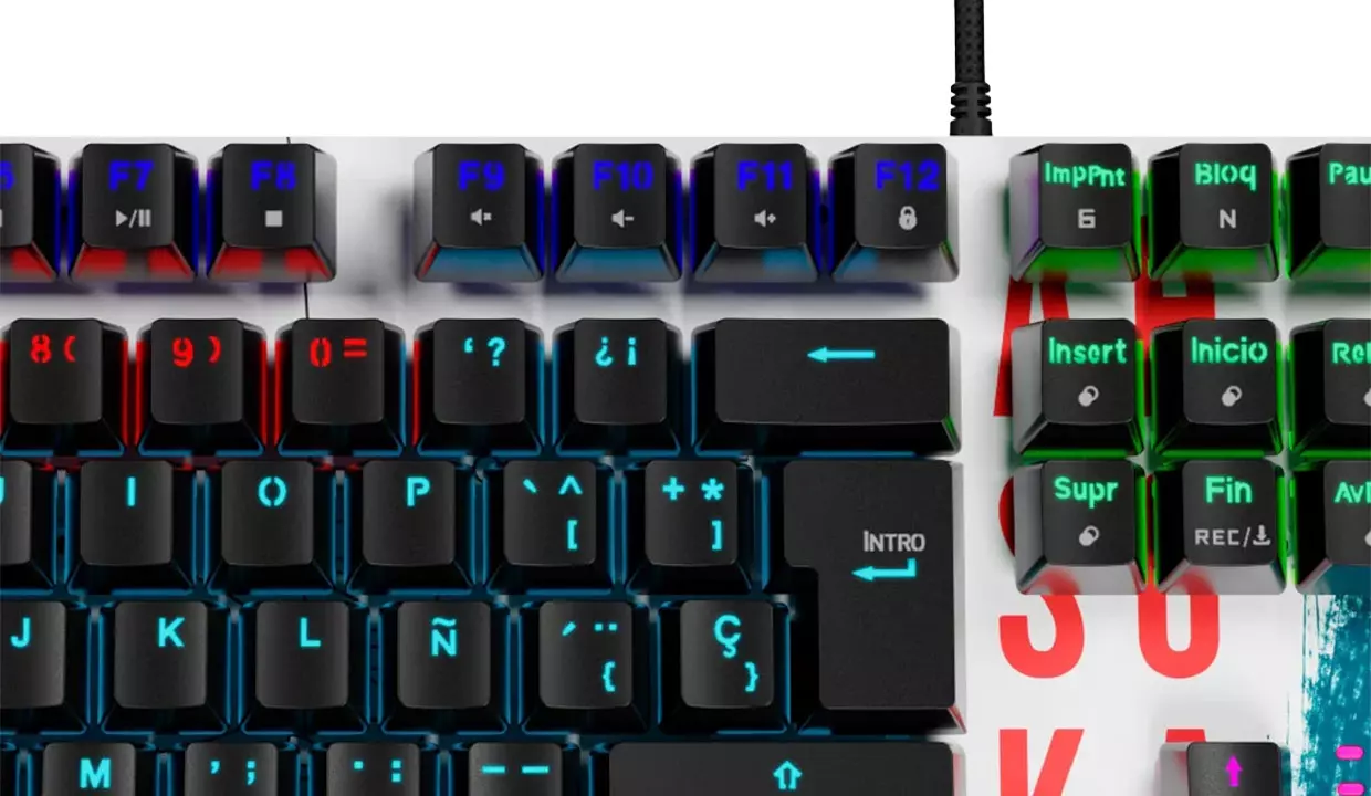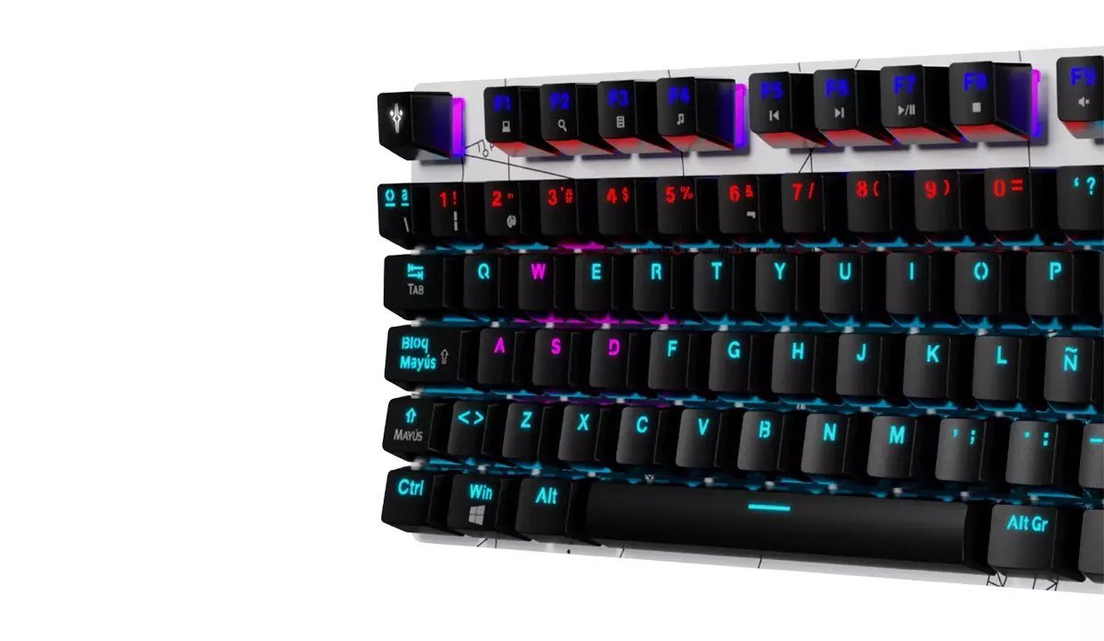 - La funcionalidad alterna a través de Fn pone a tu disposición el acceso directo a los controles multimedia y a los efectos de iluminación del teclado.