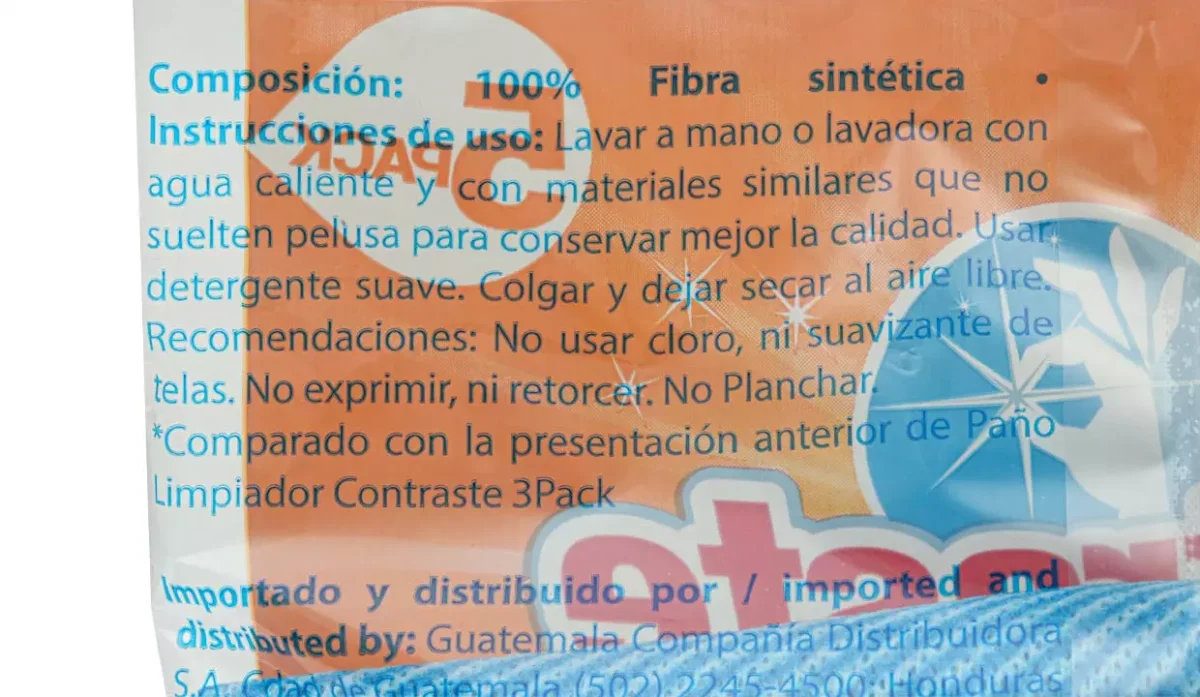 - 5 paños (2 azules, 2 rosados, 1 verde).
