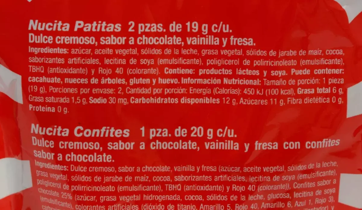 - Nucita patitas: dulce cremoso sabor a chocolate, vainilla y fresa.