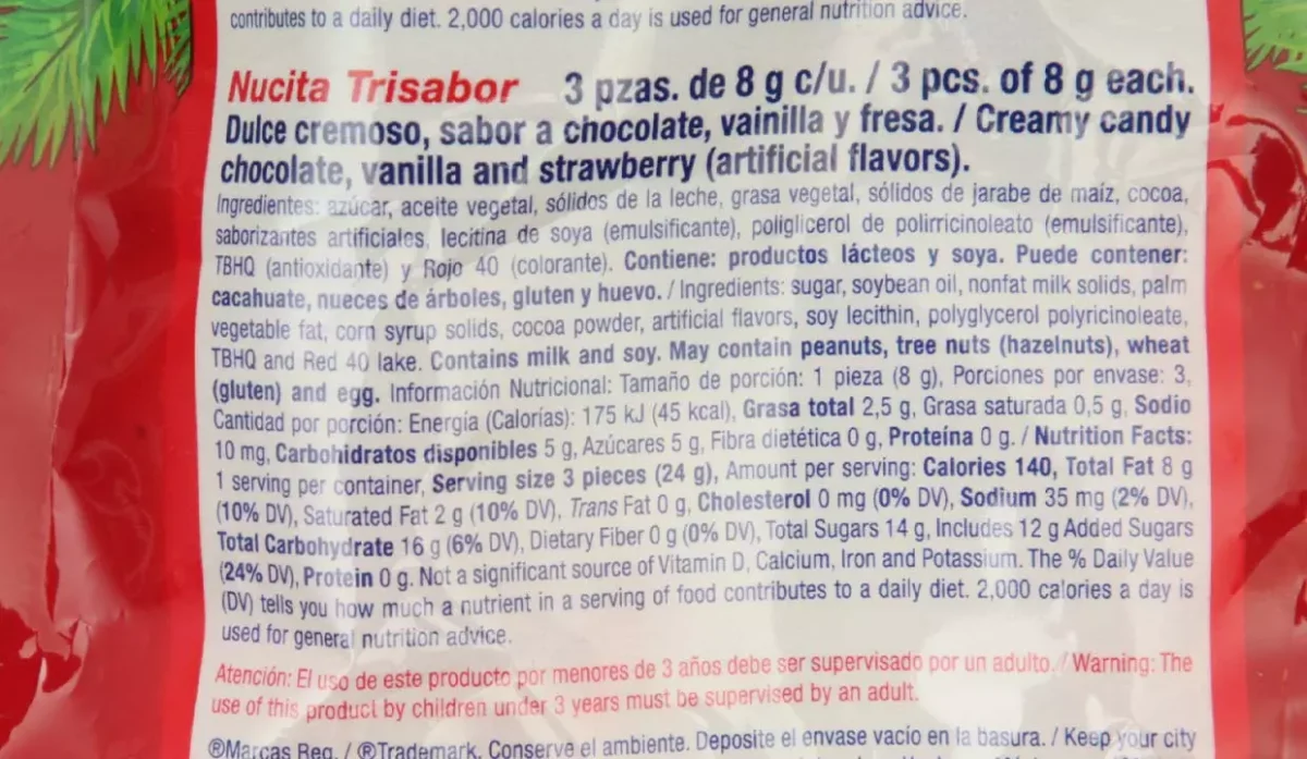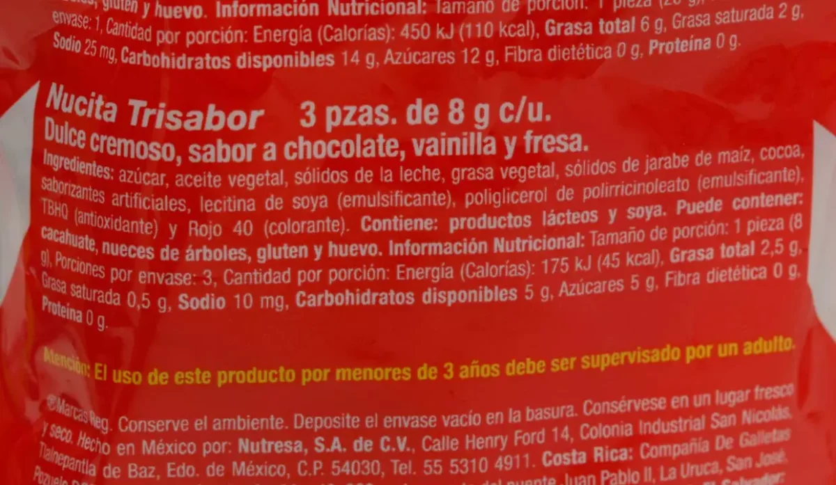 - Nucita trisabor: dulce cremoso sabor a chocolate, vainilla y fresa.