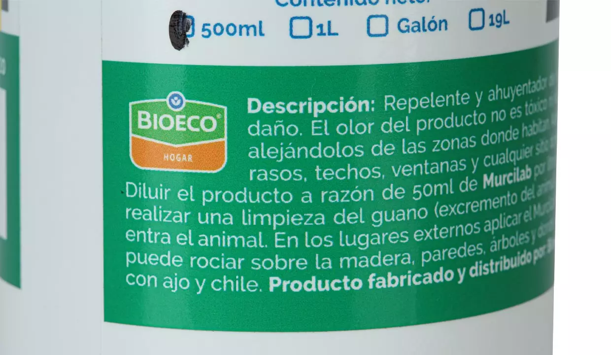 - Extracto natural a base de ajo, pimienta, chile, aceite vegetal.