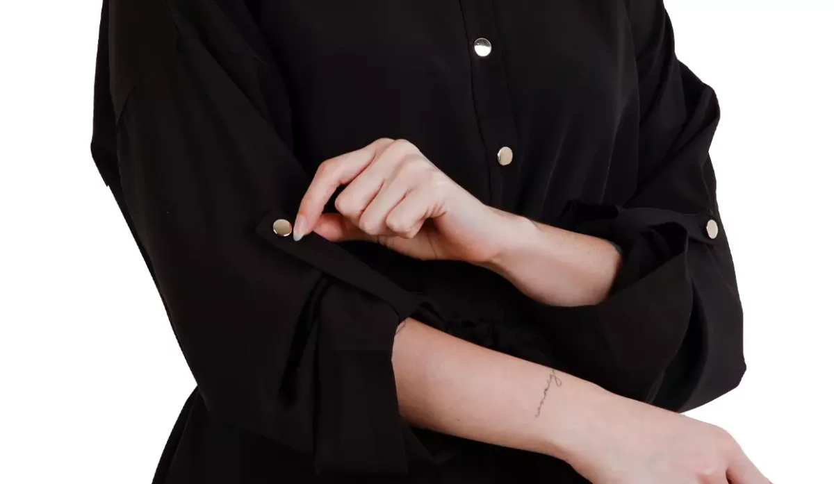 - Vestido manga larga con cierre de botones.