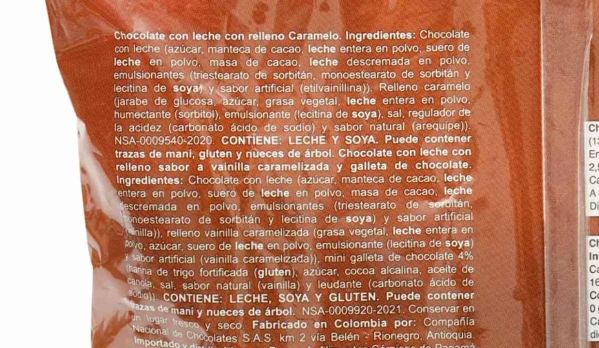- Contiene leche y soya, puede contener trazas de maní, gluten, nueces de árbol.