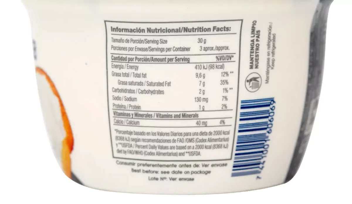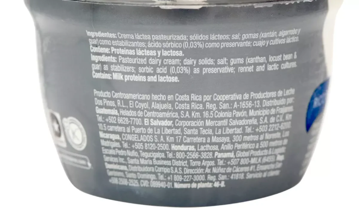 - Crema láctea pasteurizada, sólidos lácteos, sal, gomas, ácido sórbico como preservante, cuajo y cultivos láctico.
