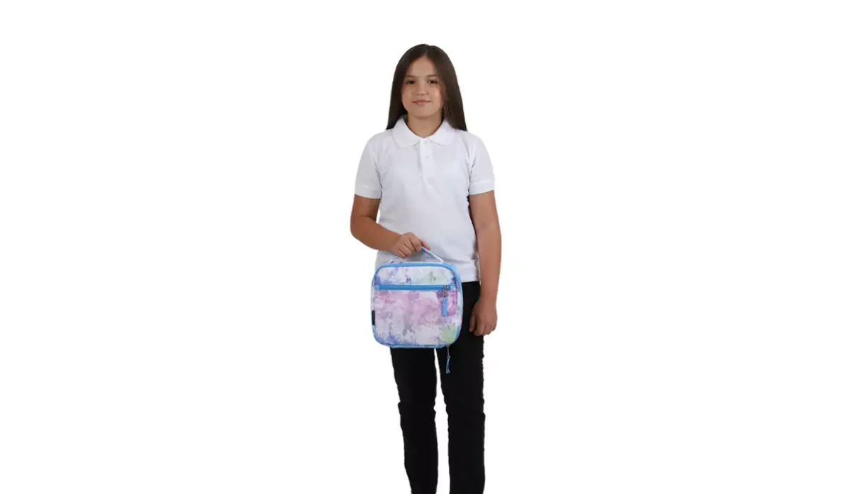- La abertura en ángulo permite que la lonchera quede plana para usarse como bandeja.