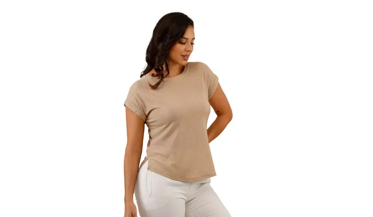 - Cuello tipo redondo y manga corta.