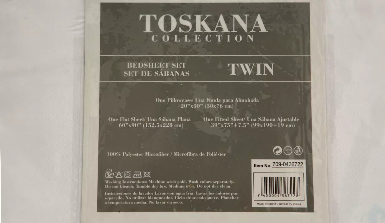 - 1 sábana plana de 152,5 cm de ancho x 228 cm de largo.