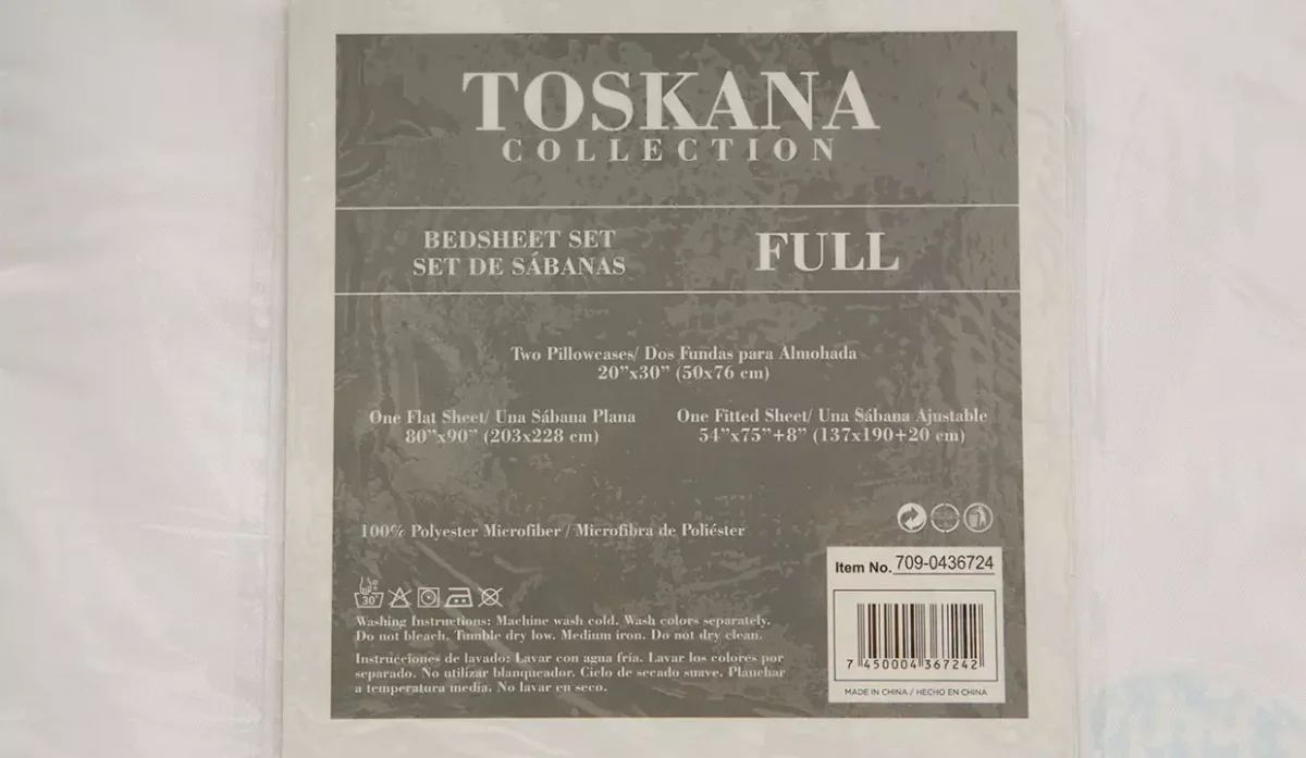 - 1 sábana plana de 203 cm de ancho x 228 cm de largo.