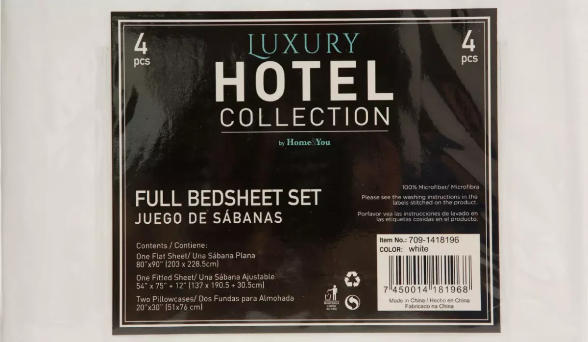 - 1 sábana plana de 203 cm de ancho x 228,5 cm de largo.