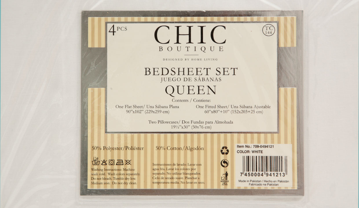 Incluye- 1 sábana plana de 229 cm de ancho x 259 cm de largo.
