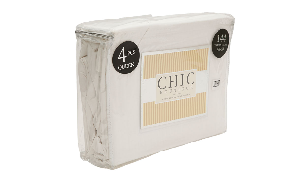 SET DE SÁBANAS Y FUNDAS CHIC BOUTIQUE BLANCO QUEEN