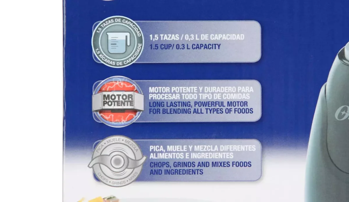 | Pica, muele y mezcla diferentes alimentos e ingredientes | |