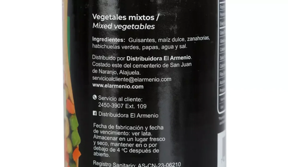- Guisantes, maíz dulce, zanahorias, habichuelas verdes, papas, agua y sal.
