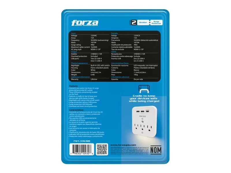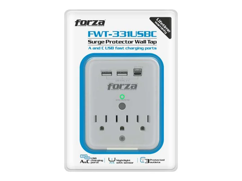 | Diseño | Forza FWT-331USBC Surge Wall Tap 110V 3USB 3AC Out NLight |