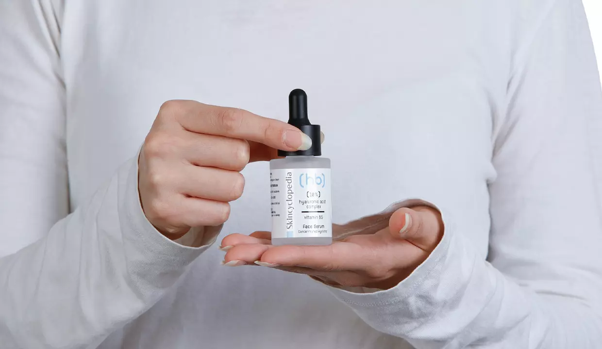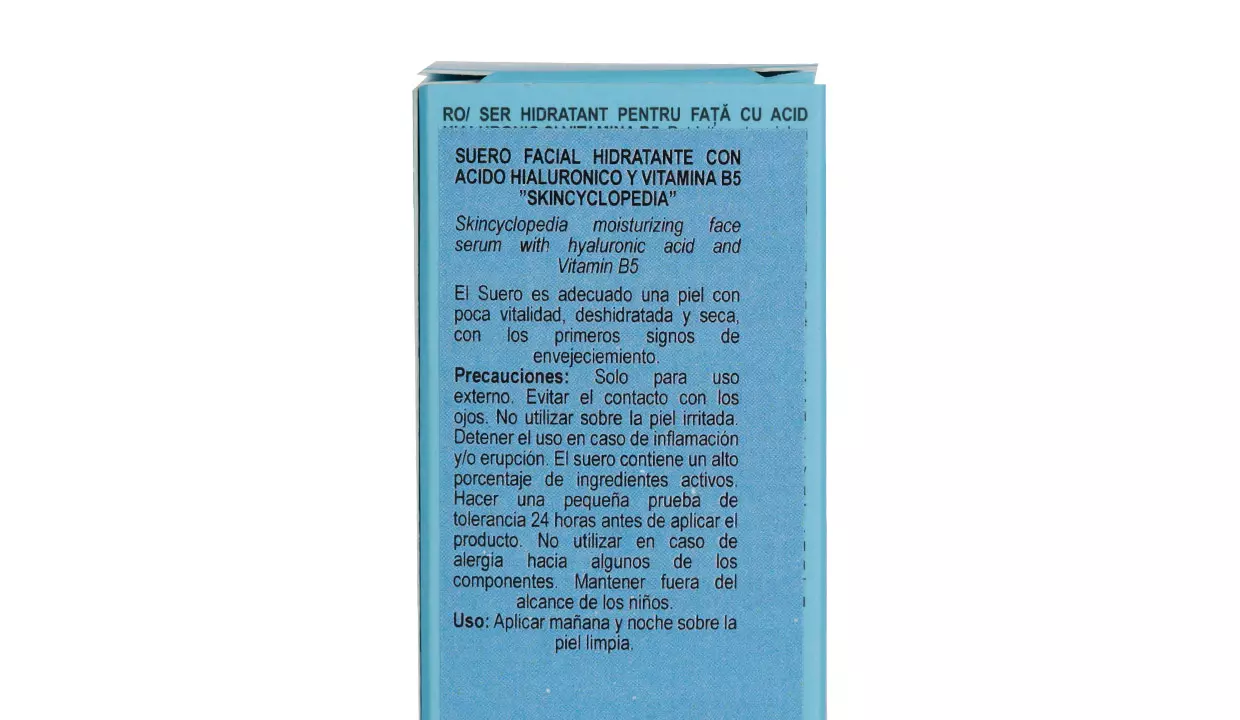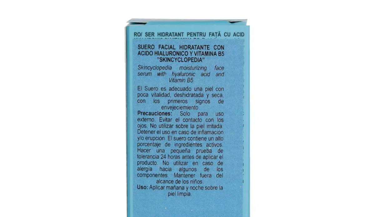 - El sérum facial hidratante con complejo de ácido hialurónico al 10% y vitamina B5 de Skincyclopedia hidrata la piel seca, apagada y deshidratada.
