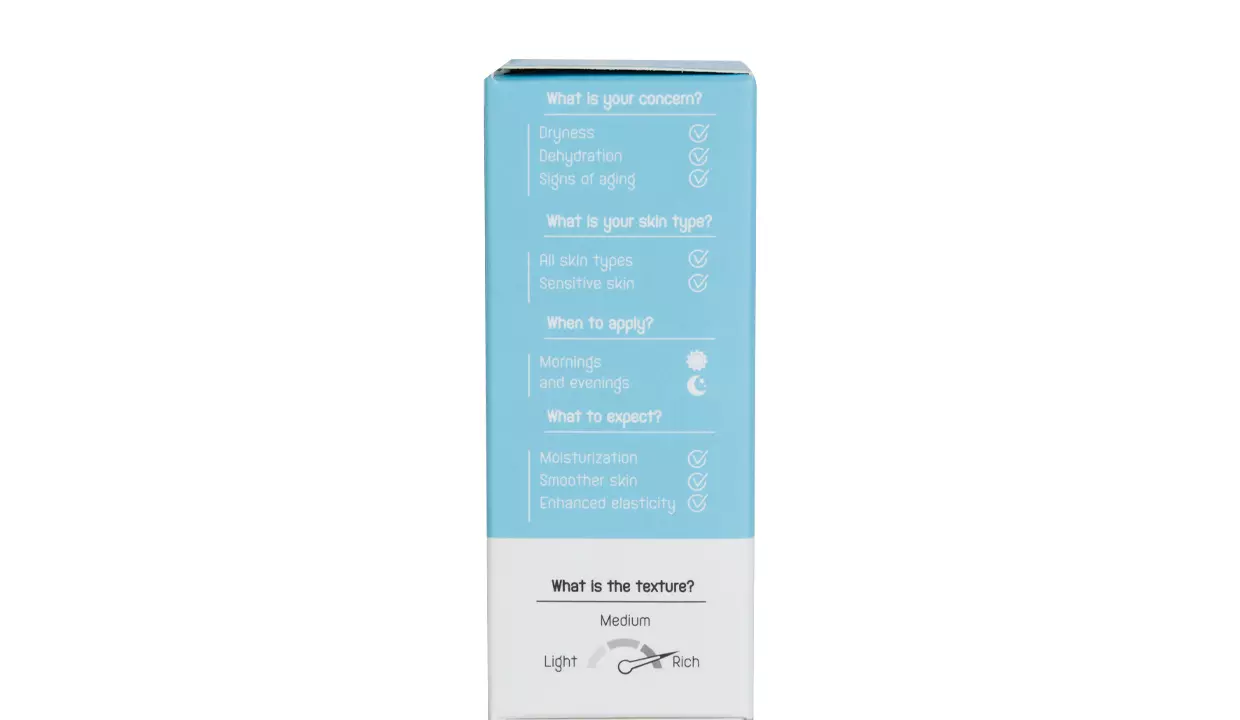 - Cada molécula de ácido hialurónico se une con hasta 1000 moléculas de agua, lo que ayuda a rellenar y restaurar la comodidad de la piel deshidratada y mejora su estructura.