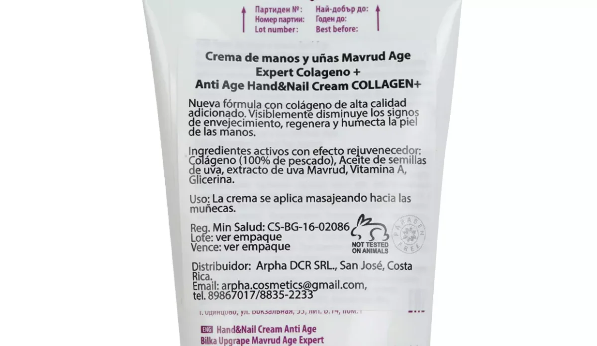 - Ingredientes activos con efecto rejuvenecedor: colágeno, aceite de semilla de uva, extracto de uva mavrud, vitamina A, glicerina.