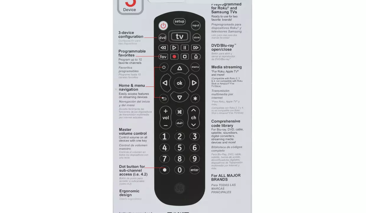 - Preprogramado para televisores Samsung.