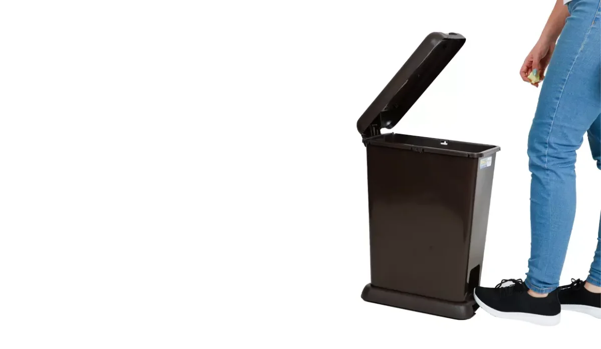 - Tapa abatible y de acción por pedal.