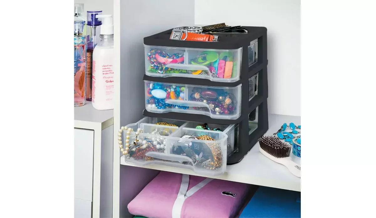 - Con tres gavetas, las cuales tienen 4 divisiones removibles que se pueden ajustar de acuerdo a sus requerimientos.