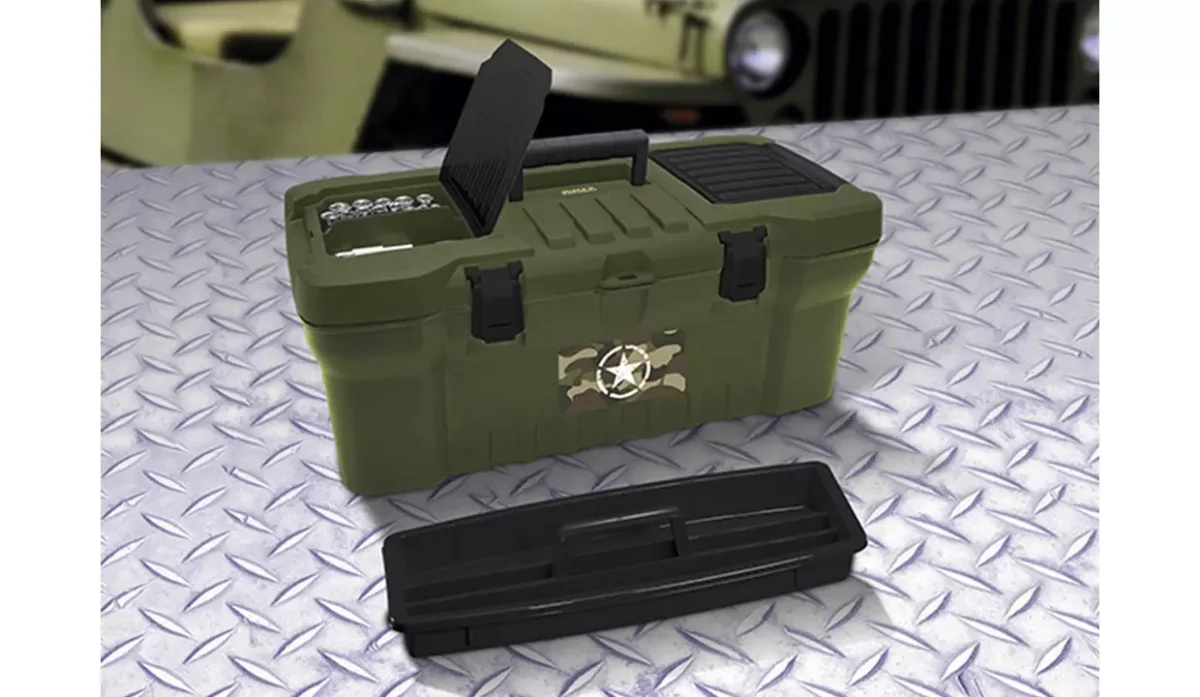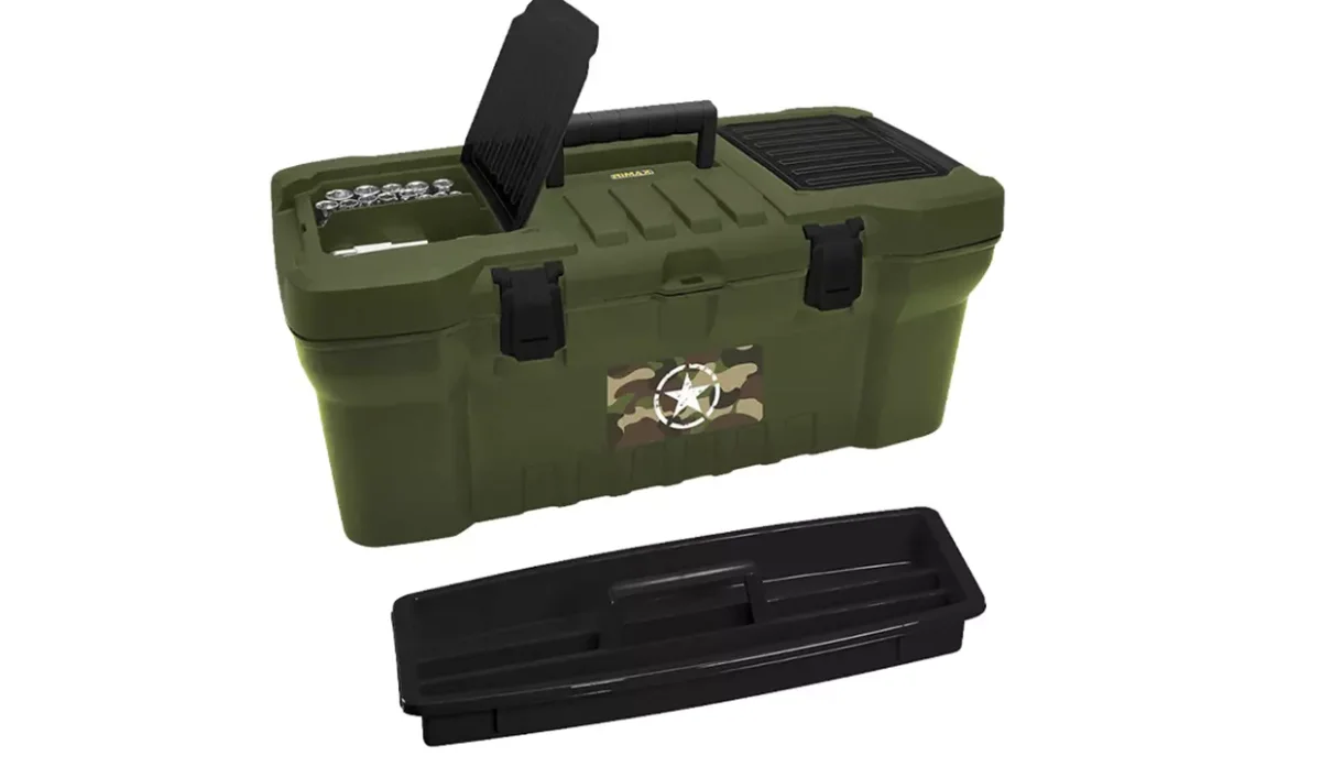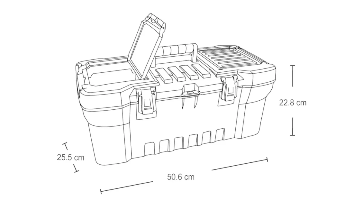- Cuenta con dos compartimentos en la tapa para herramientas pequeñas.