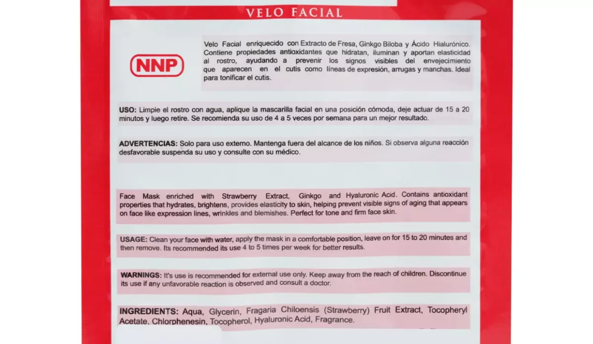 - Enriquecido con extracto de fresa, ginkgo biloba y ácido hialurónico.