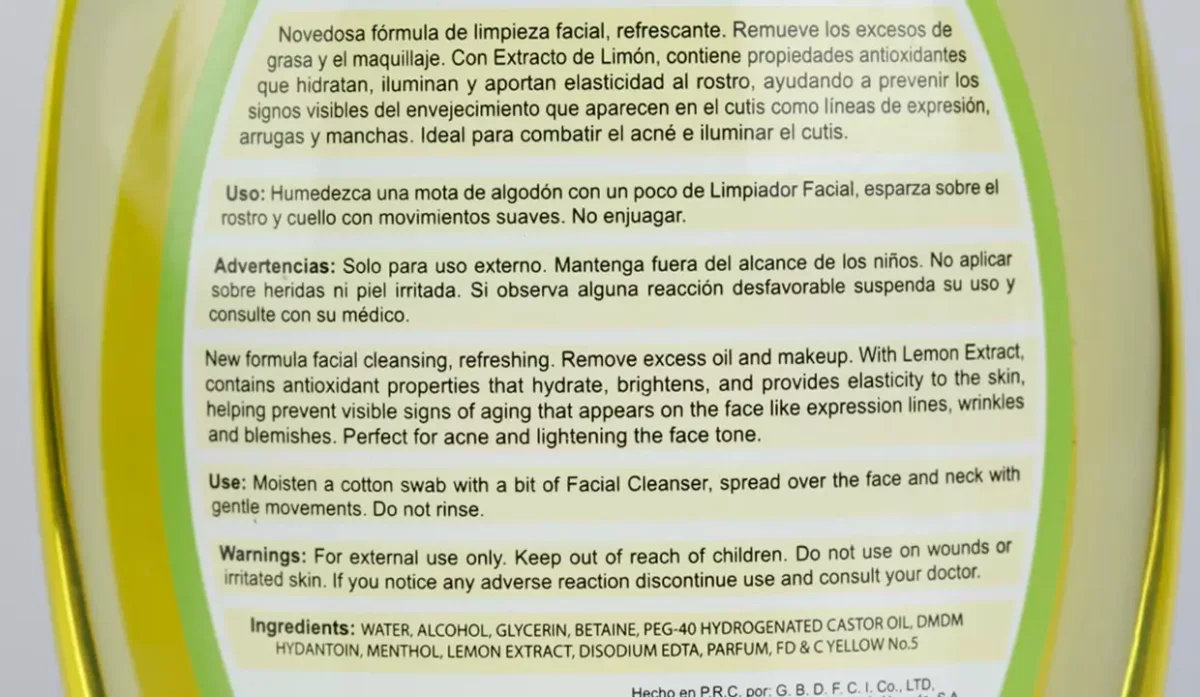 - Con extracto de limón que contiene propiedades antioxidantes que hidratan, iluminan y aportan elasticidad al rostro.