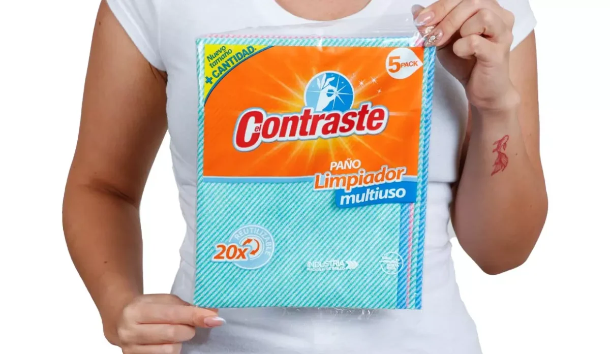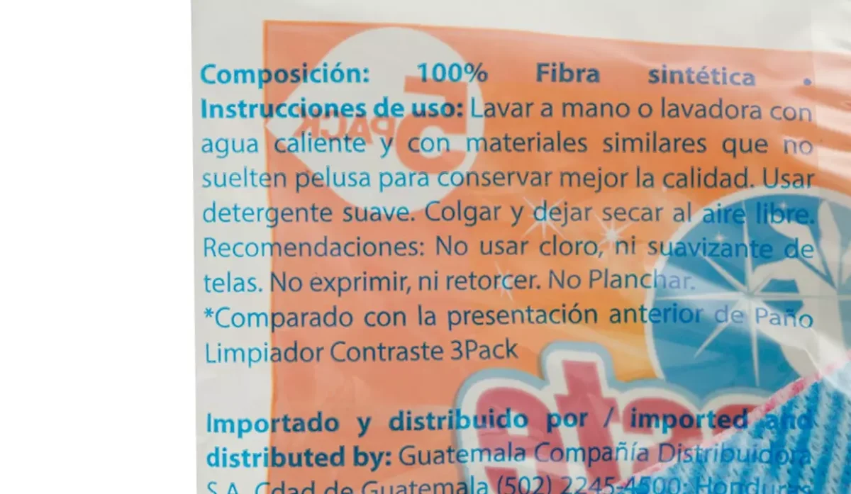 - 5 paños (2 rosados, 2 verdes ,1 azul).