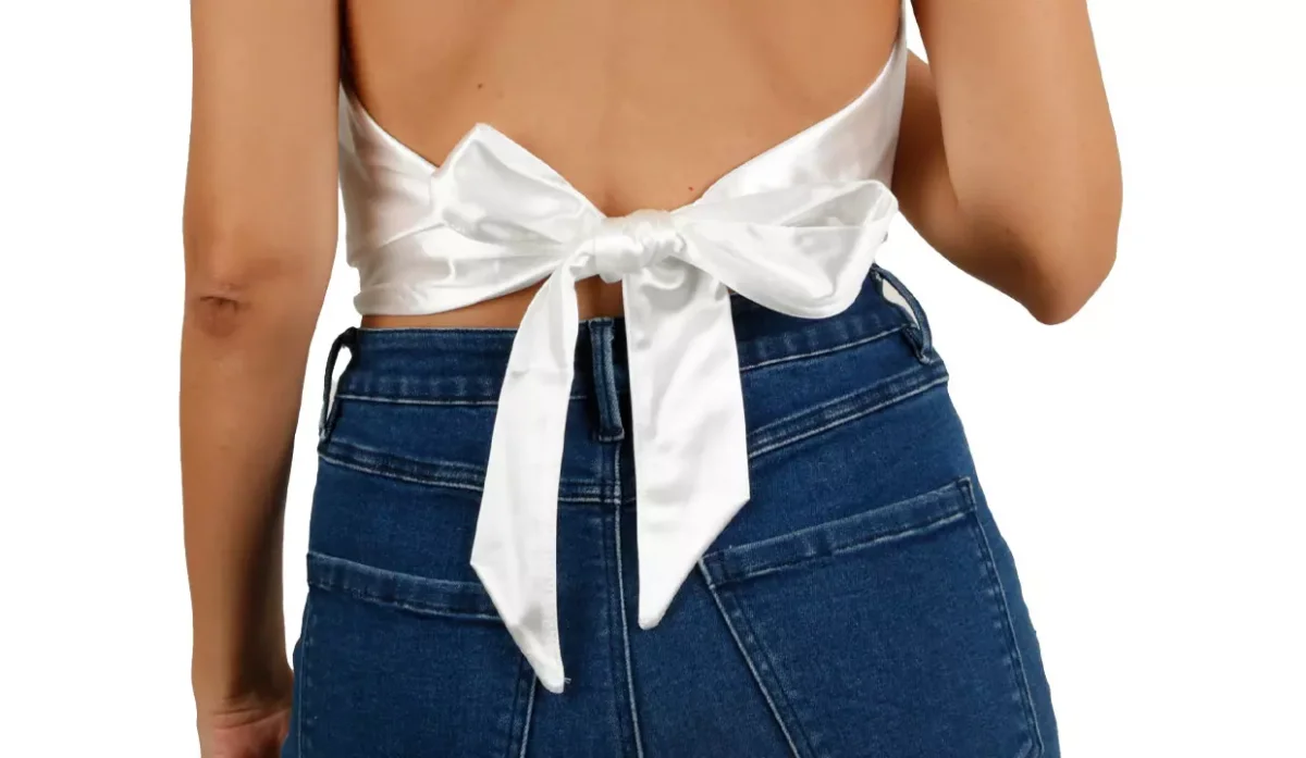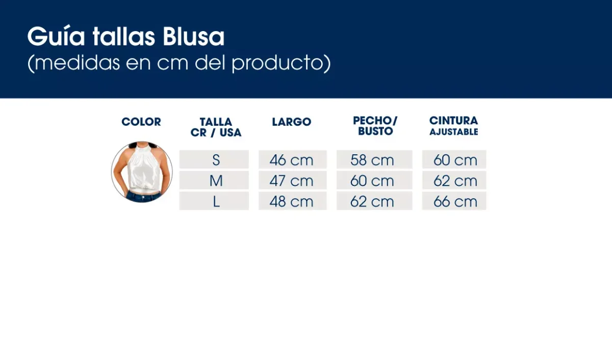 - Blusa con tiras ajustables en la parte posterior para hacer un lazo decorativo.