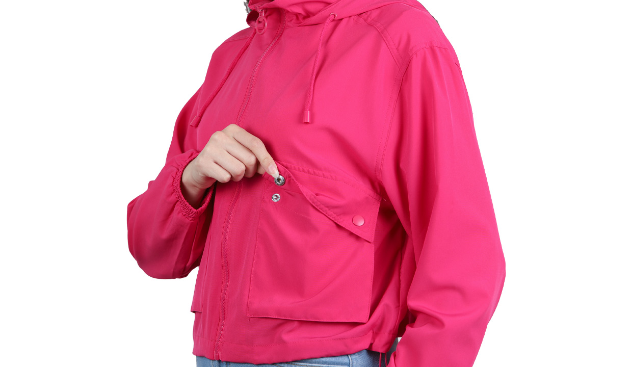 - Con bolsillos delanteros con cierre de broche.