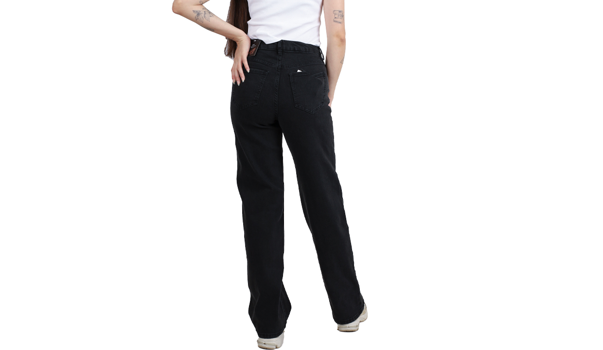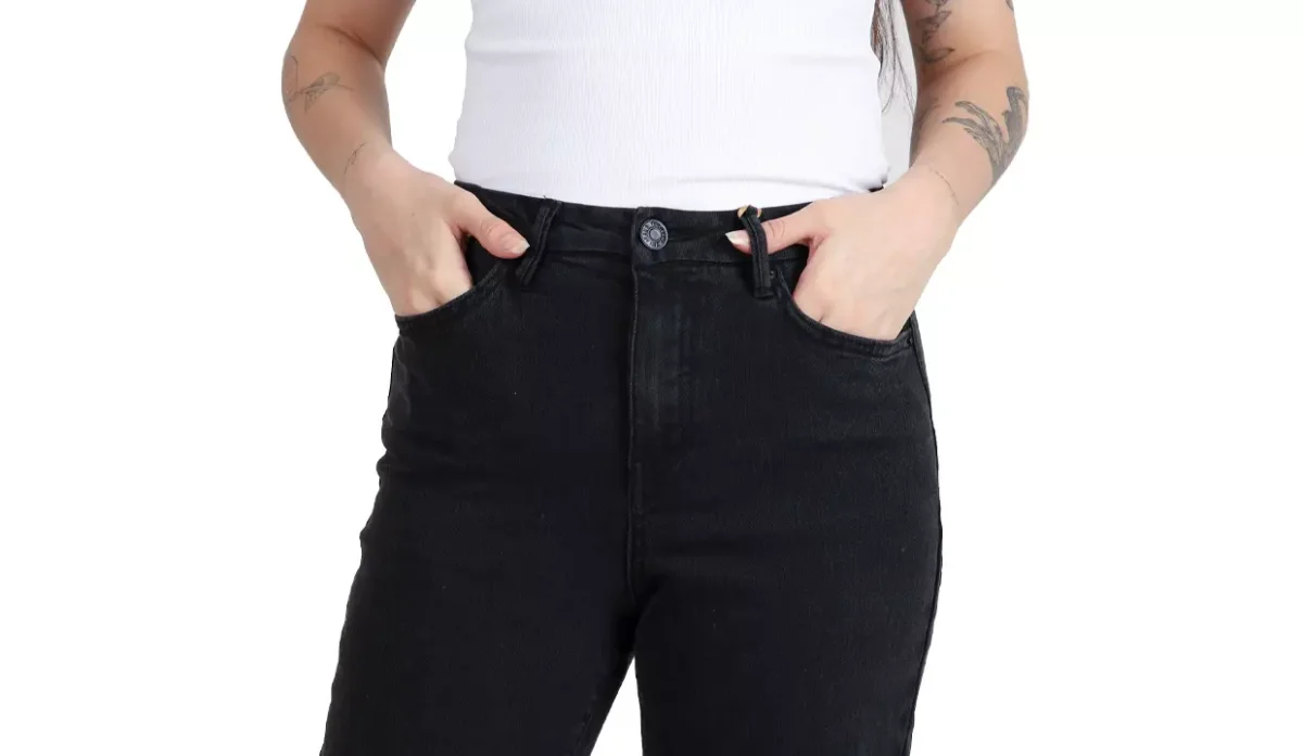 - Jeans de talle alto con cintura entallada y un poco más de espacio en las caderas y los muslos para que lo único que parezca ceñido sea su cintura.