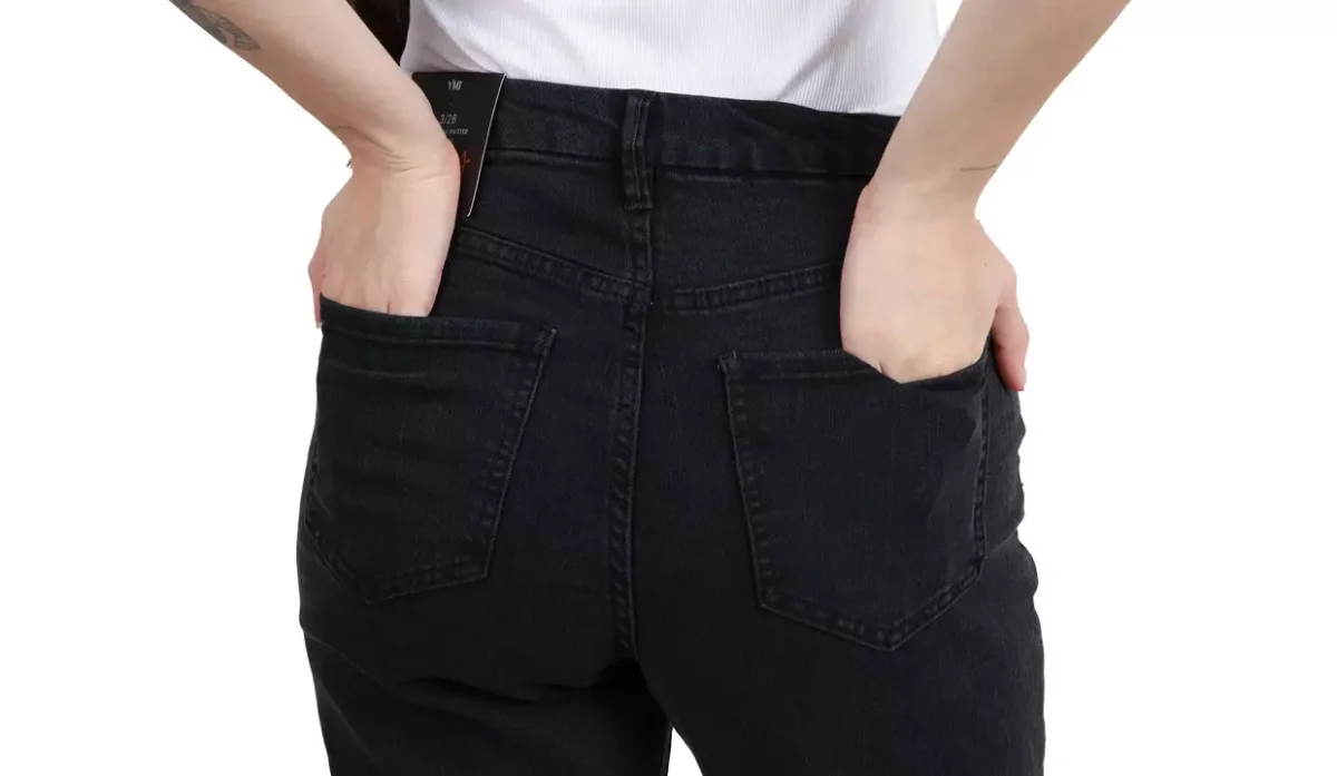 - Jeans de talle alto con cintura entallada y un poco más de espacio en las caderas y los muslos para que lo único que parezca ceñido sea su cintura.