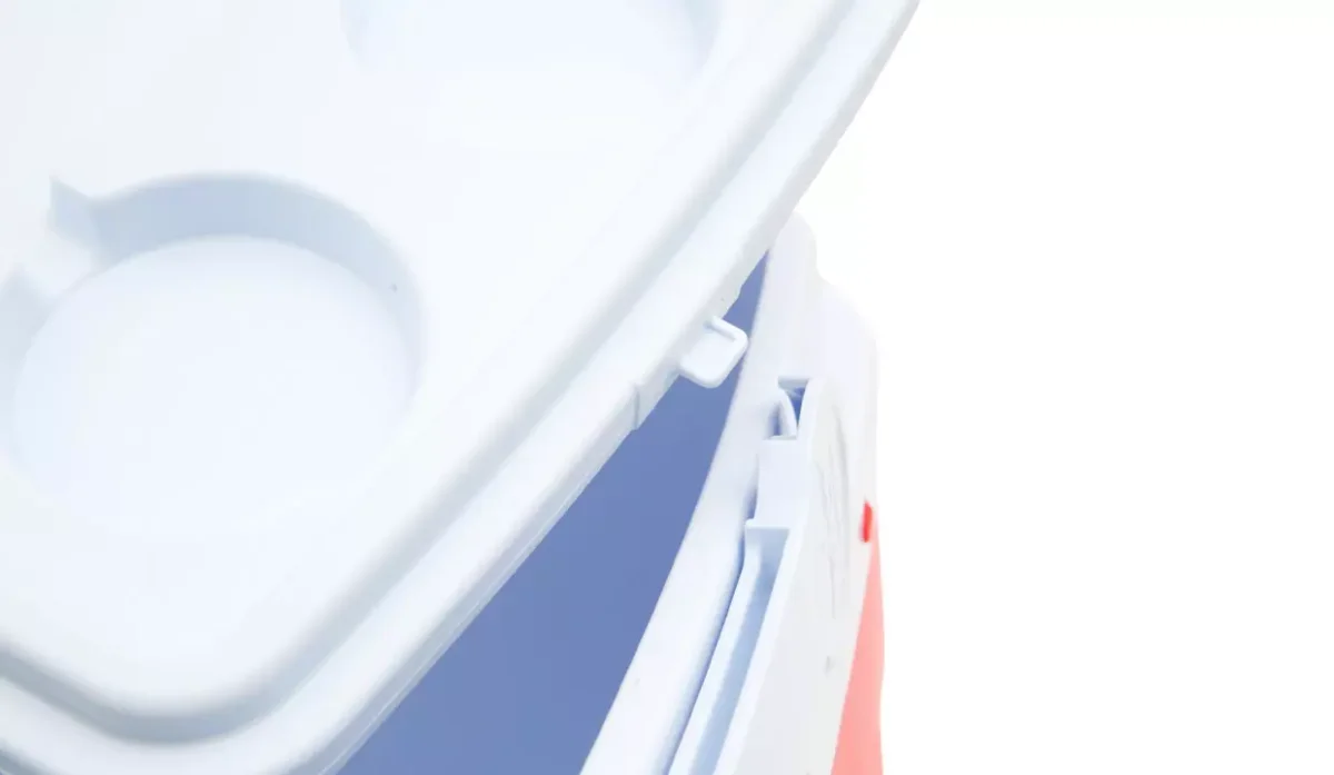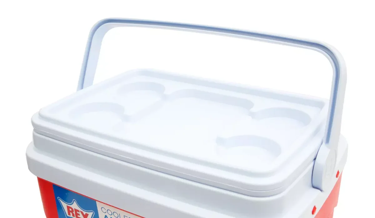 - Tapa reversible que puede ser usada como bandeja con 4 compartimentos para vasos y un espacio para snacks.
