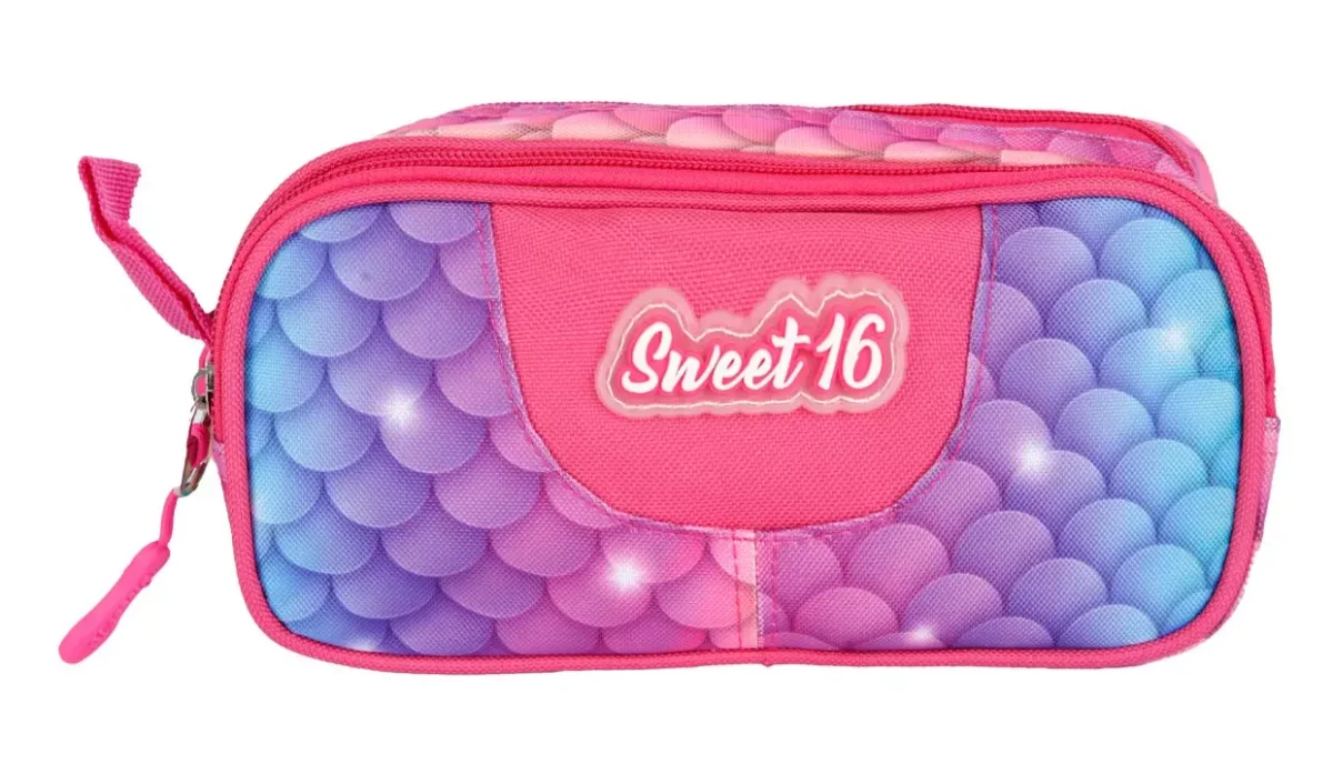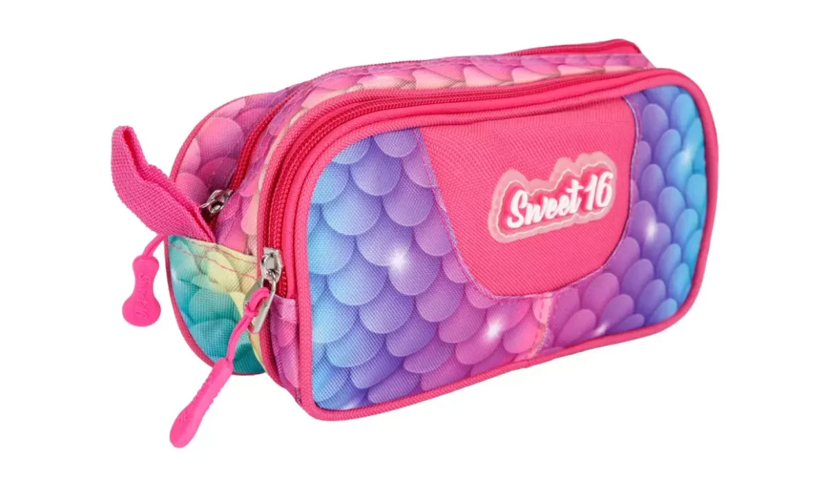 - Cartuchera con 2 compartimentos con cierre de zipper.