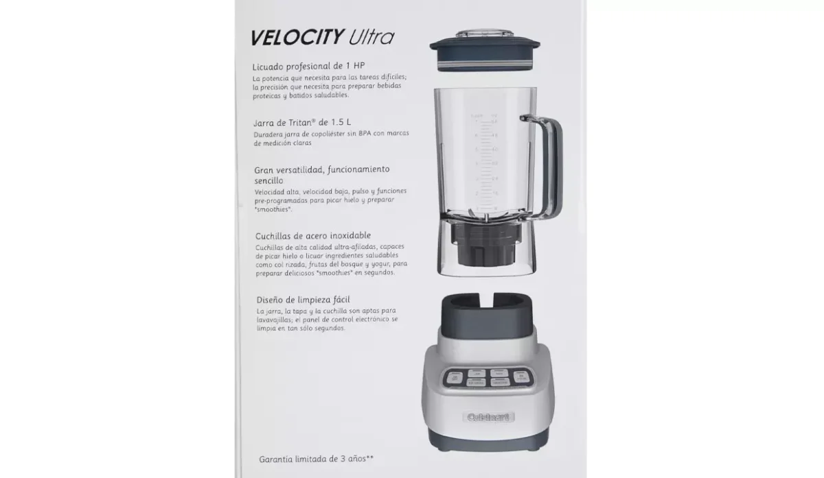 - Jarra, tapa y cuchillas aptas para lavavajillas.
