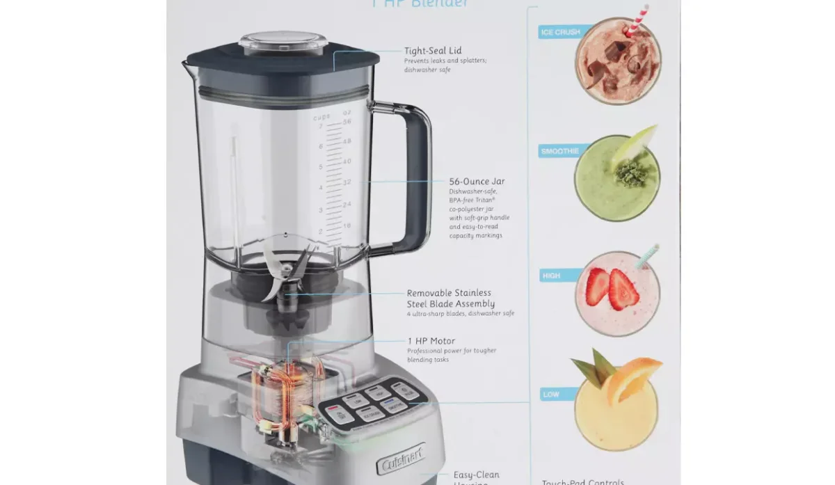 - El motor profesional de 1 HP realiza con facilidad bebidas proteicas y batidos saludables.