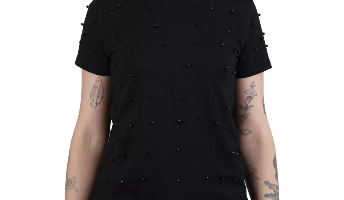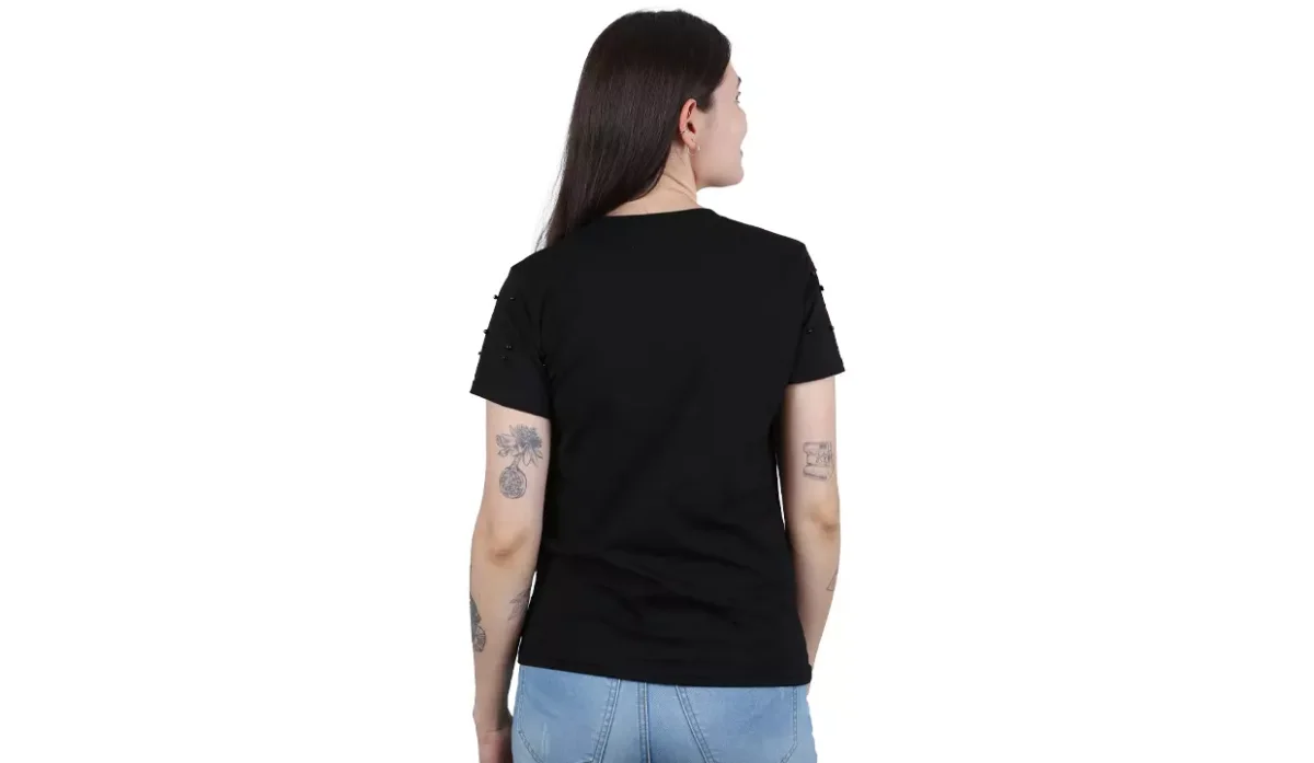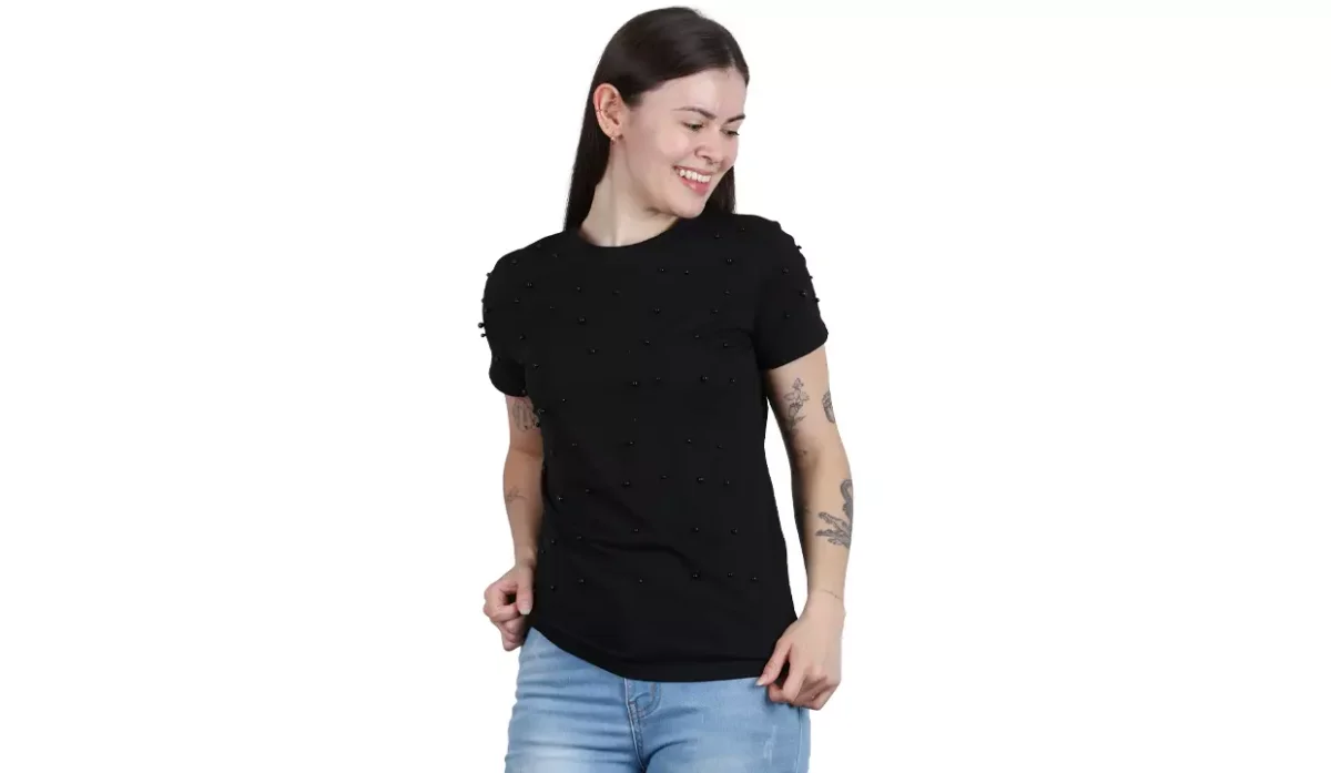 - Diseño con imitación de perlas negras en la parte frontal.