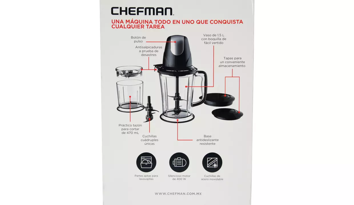 - Poderozo motor: con un solo toque pica, tritura hielo, mezcla y hace puré de manera eficiente.