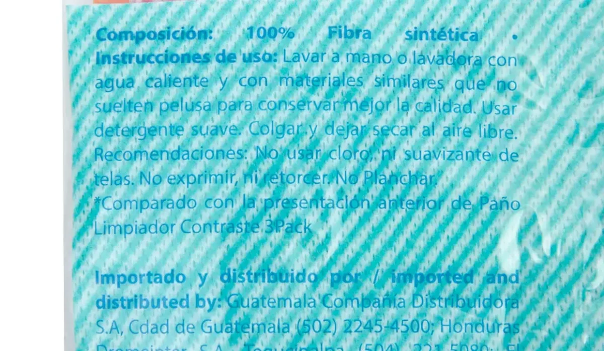 - 5 paños (2 azules, 2 verdes, 1 rosado).