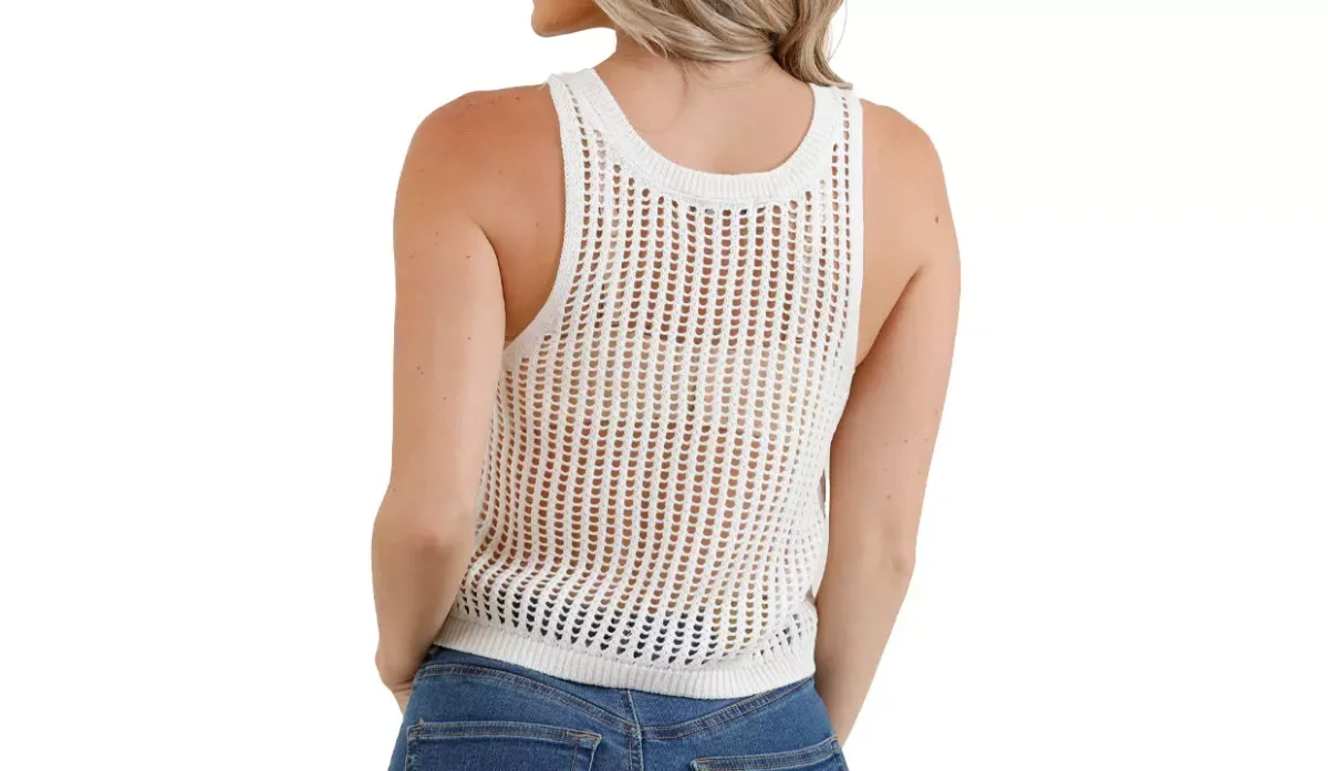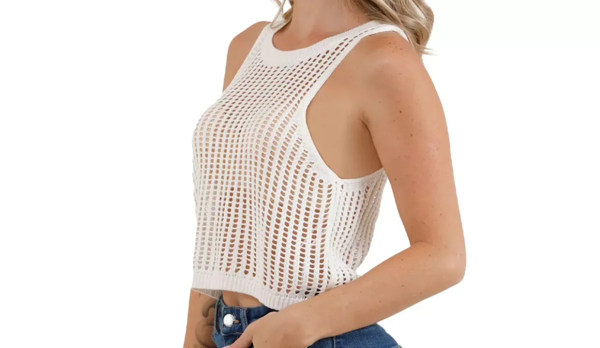 Con cuello tipo redondo y sin mangas.