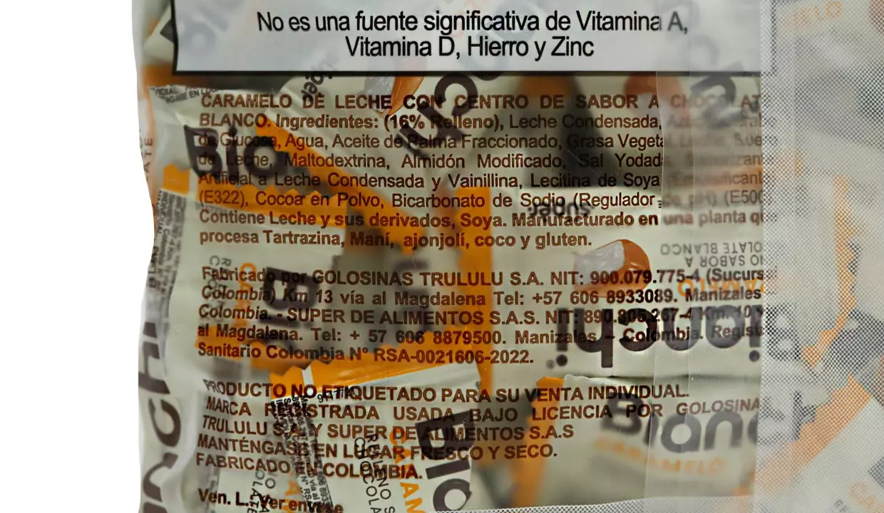 - Manufacturado en una planta que procesa tartrazina, maní, ajonjolí, coco y gluten.
