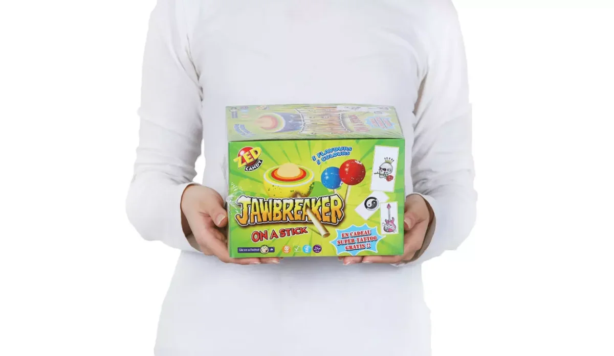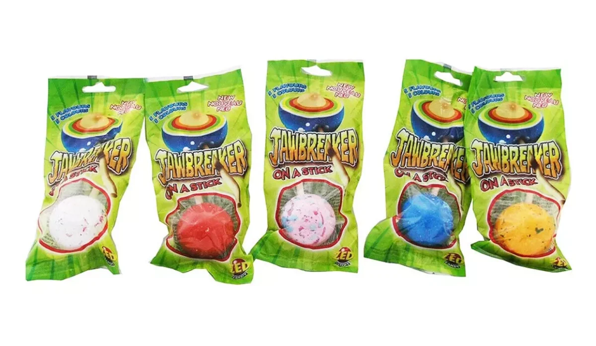 - El caramelo está formado por varias capas de frutas y tiene un chicle en el centro.