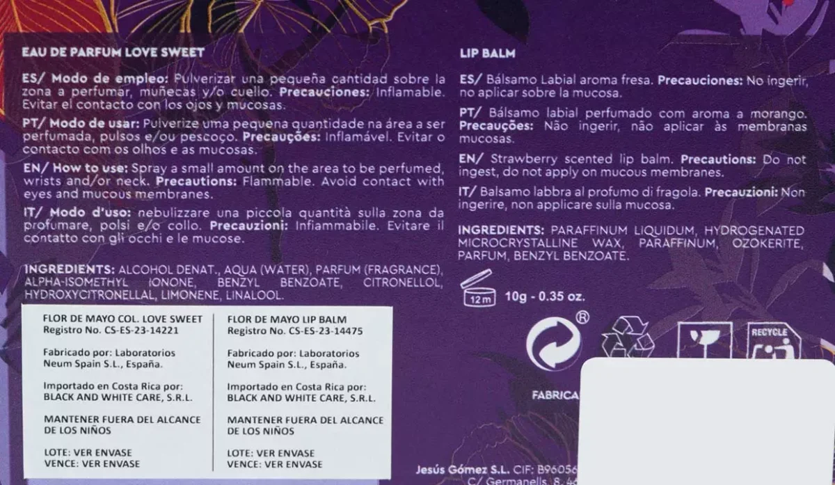 - Perfume: fragancia floral afrutada con gran personalidad que representa el romanticismo.