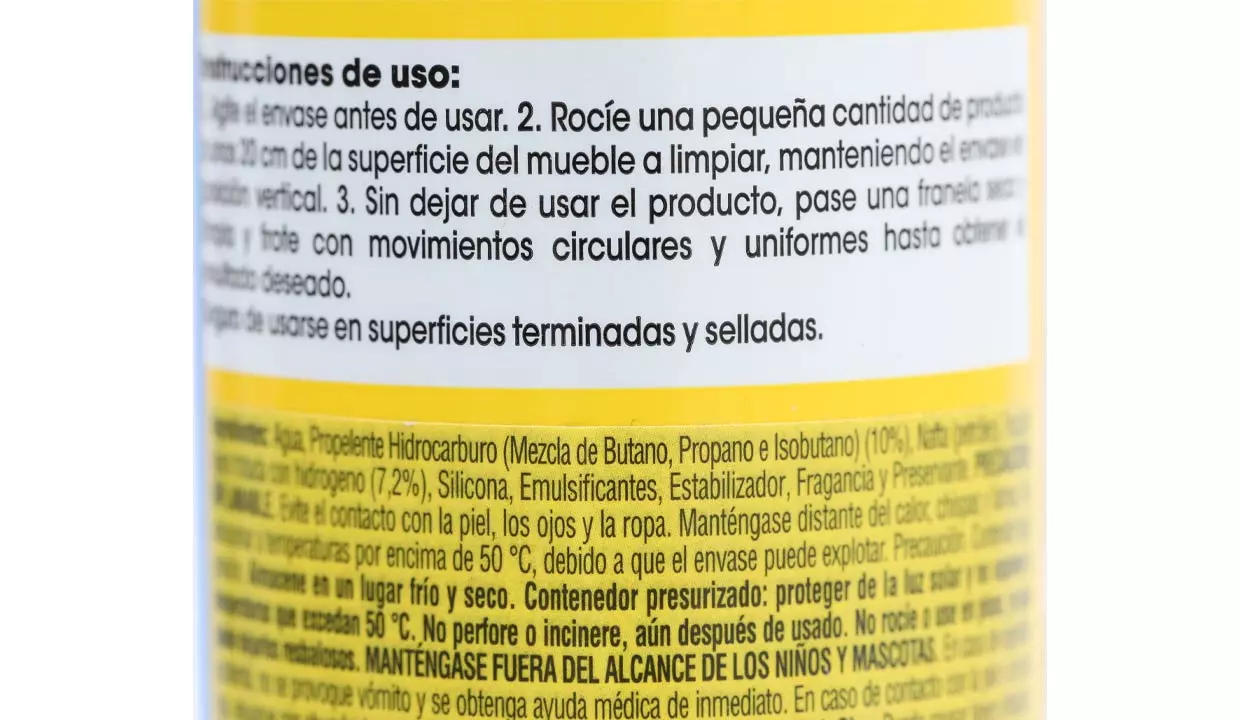 - Uso en superficies recomendadas: madera sellada, laminado, acero inoxidable, cuero y granito.