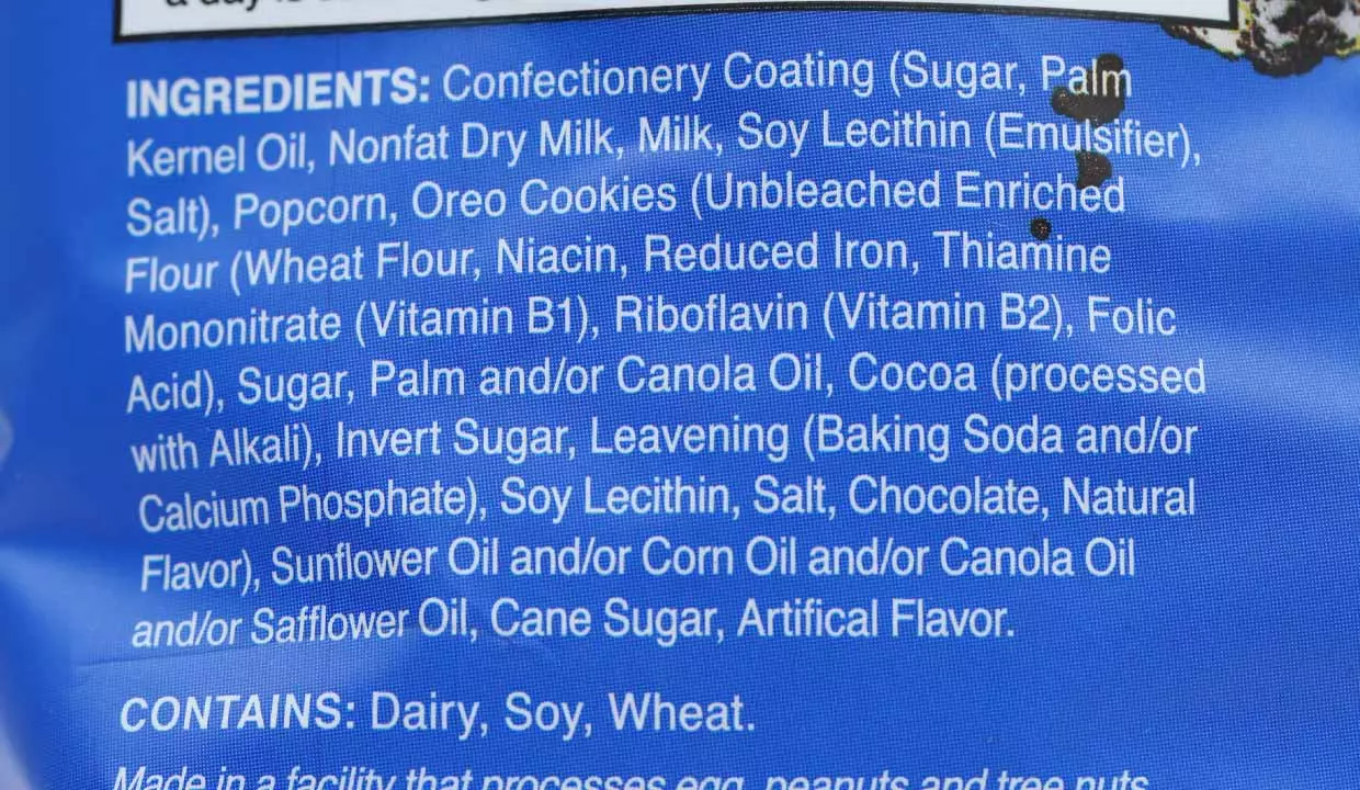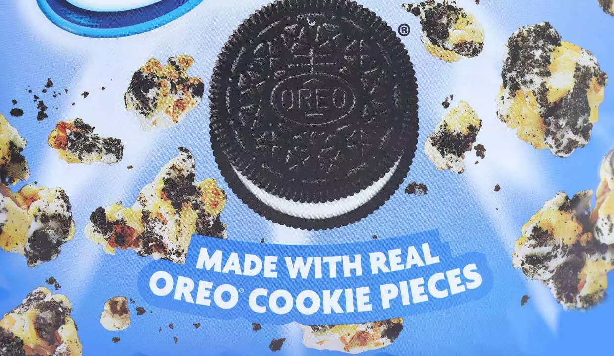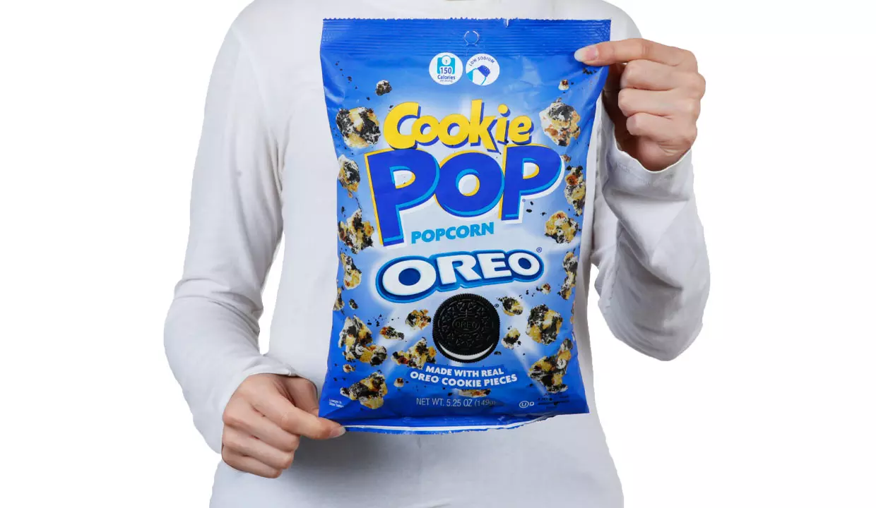 - Cobertura de confitería, aceite de palmiste, leche en polvo descremada, leche, emulsionante de lecitina de soja, sal, palomitas de maíz, galletas oreo, harina enriquecida sin blanquear, harina de trigo, niacina, hierro reducido, mononitrato de tiamina, vitamina B1, riboflavina, vitamina B2, ácido fólico , azúcar de palma y/o aceite de canola, cacao, procesado con álcali, azúcar invertido, bicarbonato de sodio y/o fosfato de calcio, lecitina de soja, sal, chocolate y/o aceite de canola y/o aceite.