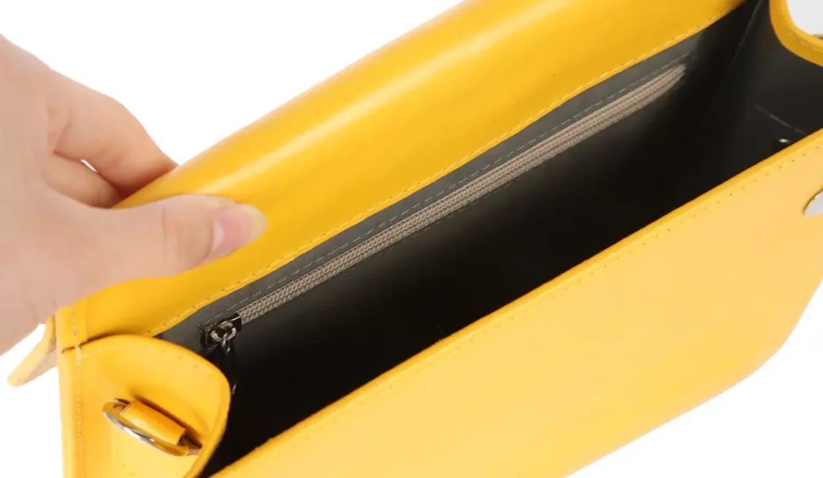- Su interior cuenta con un compartimento principal con cierre de broches y uno pequeño con zipper.